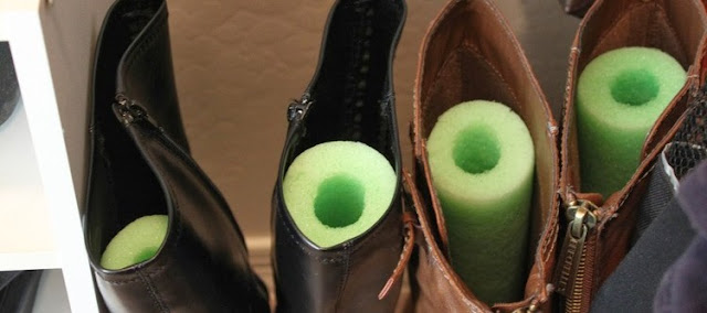 Para evitarla que se estropeen, podemos hacernos con un rollo que utilizan los niños para jugar en la piscina y lo cortamos a trocitos (si da el largo de la bota mucho mejor), así se pondrán guardar de pie porque se mantienen erguidas.